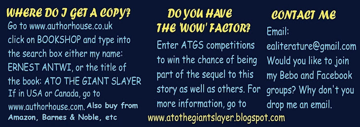 You will find on this blog a brief description of the story in addition to some information on major characters, fantastic competitions and the soon to be established, Giant Slayers Club. You will also have an insight into the purpose of the ATGS Series.